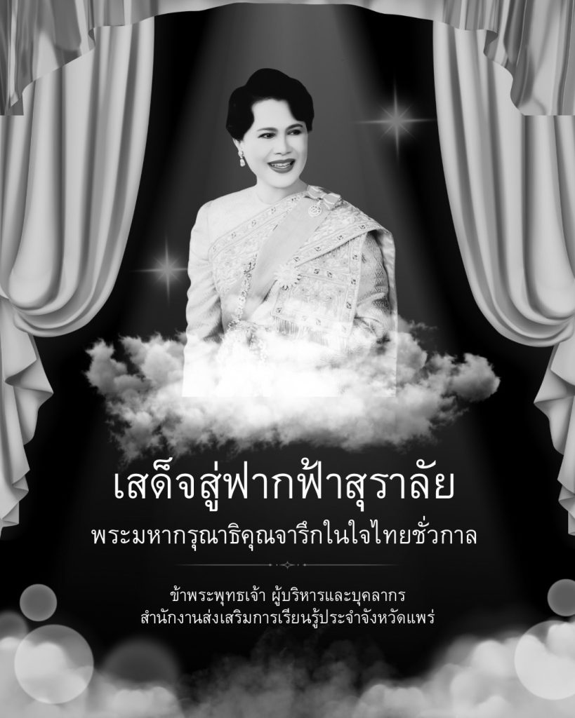 ข่าวกิจกรรม น้อมส่งเสด็จสู่สวรรคาลัย สมเด็จพระนางเจ้าสิริกิติ์พระบรมราชินีนาถ พระบรมราชชนนีพันปีหลวง ด้วยสำนึกในพระมหากรุณาธิคุณอันหาที่สุดมิได้ ข้าพระพุทธเจ้า ผู้บริหารและบุคลากรสำนักงานส่งเสริมการเรียนรู้ประจำจังหวัดแพร่ ตุลาคม 25, 2025ตุลาคม 25, 2025 adminwebmaster Post Views: 76 Facebook iconFacebookTwitter iconTwitterLINE iconLine